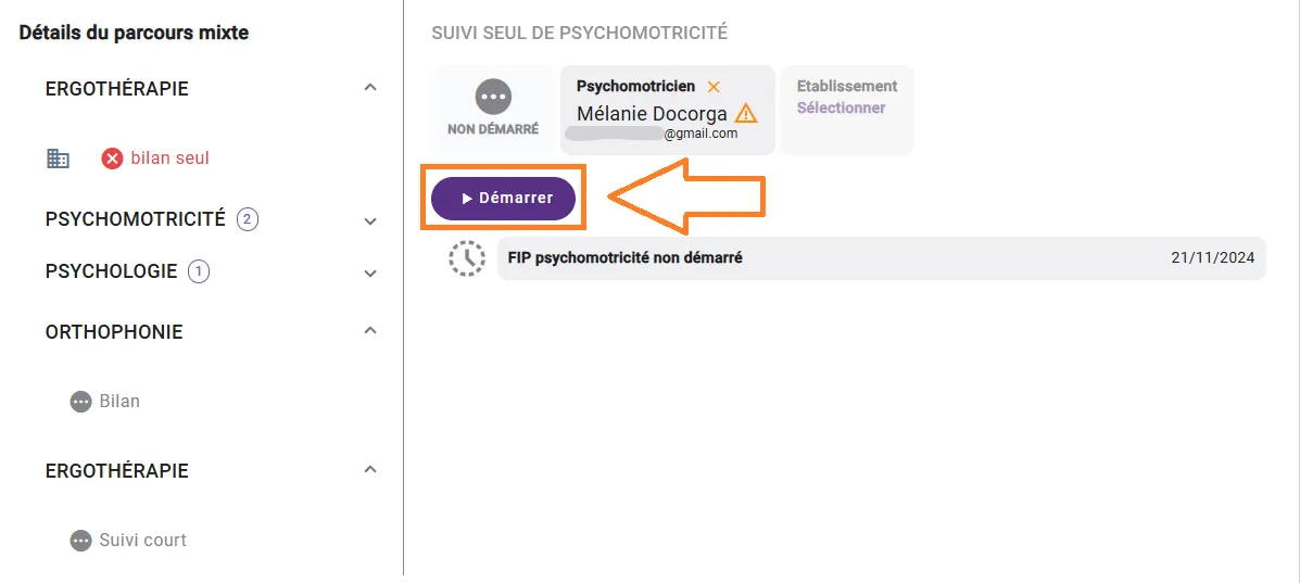 Après avoir ajouté un praticien au parcours d’un patient, vous allez pouvoir démarrer le suivi.