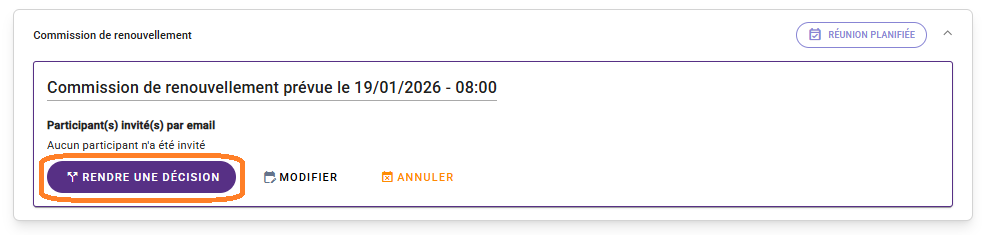 Pour cela, cliquez sur “Commission de renouvellement” puis sur “Rendre une décision”.