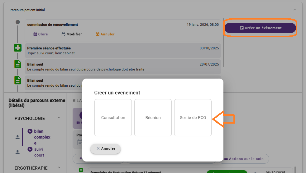 Depuis le parcours souhaité selon la situation du patient, cliquez ensuite sur :