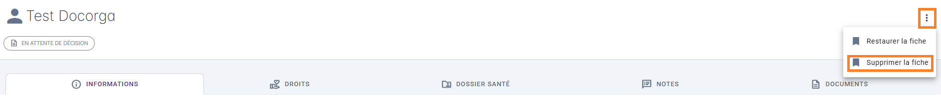En cas d’erreur, vous pourrez ainsi restaurer la fiche supprimée depuis les trois petits points.