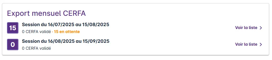 Comprendre le principe de sessions de l'export mensuel des CERFAS